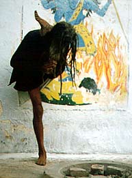 | Nach dem Leben und dem Tod Der Tod ist wie Geburt, Einweihung und Heirat auch ein Höhepunkt im Leben der Inder. Nach der vedischen Lehre ist der Verlust des Körpers beim Tode nur ein Kleiderwechsel. Man legt das zerschlissene alte Gewand ab und kriegt ein Neues, ganz nach den Wünschen, die man im Leben geformt hat! Wiedergeburt versteht sich so, dass die individuelle Seele (SELBST, ICH) nach der Geburt ihres Körpes sich mit diesem identifiziert und nach dessen Vorgaben handelt. Sei es der Körper einer Pflanze, eines Tieres, Menschen oder Halbgottes. Wie die Menschen in Indien mit dem Tod umgehen ist beachtenswert. Auf einer Höhlenmalerei entdeckte ich ein Bild, welches trauernde und weinende Personen um einen aufgebahrten Toten darstellte. Darüber befanden sich Wolken, in denen die Götter darüber schmunzelten. In der indischen Öffentlichkeit wird der Tod, selbst der, einer geliebten Person nicht mit Tränen betrauert, denn die eigentliche Person (SELBST, ICH), die man geliebt hat ist gar nicht tot, nur die Kleidung war, wie auch immer, unbrauchbar geworden. Und das muss so schnell wie möglich bestattet werden. Ausserdem, so glauben Hindus, verhindern Tränen eine schnelle Verbrennung. Sie wissen, dass nach einiger Zeit irgendwo ein Baby.........mit halt dieser inividuellen Seele ein neues Leben beginnt. Aus diesem Wiedergeburt, Wiederwunsch und Wiedertod- Kreislauf kann man mit Hilfe der Yogawissenschaften entkommen und damit individuell seine eigenen Leiden, Altern, Tod und Geburt terminieren. Verschiedene Bestattungen Im Falle des Todes eines Menschen wird in Indien auf vielfältige Art und Weise bestattet. Jede Religionsgruppe hat dabei ihre Vorgaben, denn der Tod ist immer eine Verunreinigung der Atmosphäre in der näheren Umgebung. Rituale und Zeremonien wirken dem entgegen. Bei der Vernichtung des Körpers werden auch die Elemente verunreingt. Die Religionen zum Beispiel, welche das Feuer verehren, bestatten in der Erde oder im Wasser, um das Feuer nicht zu beschmutzen. Andere, welche die Elemente Erde, Wasser, Luft und Feuer verehren (Parsi), bestatten aus gleichem Grund auf hohen Türmen